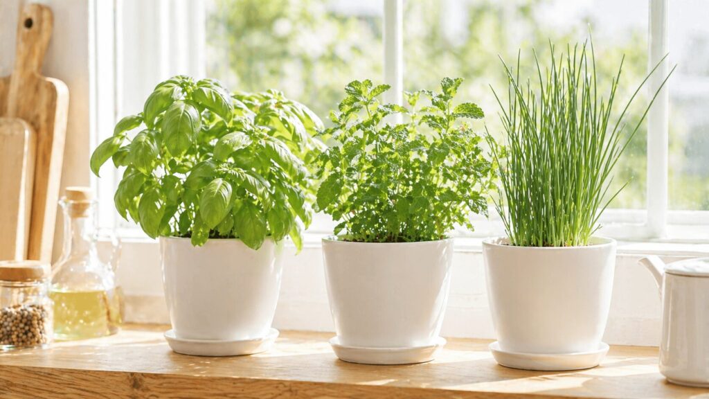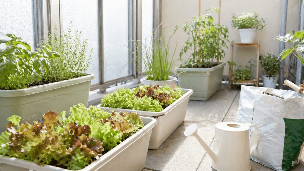 ベランダがなくても、室内の窓辺で菜園は楽しめます。