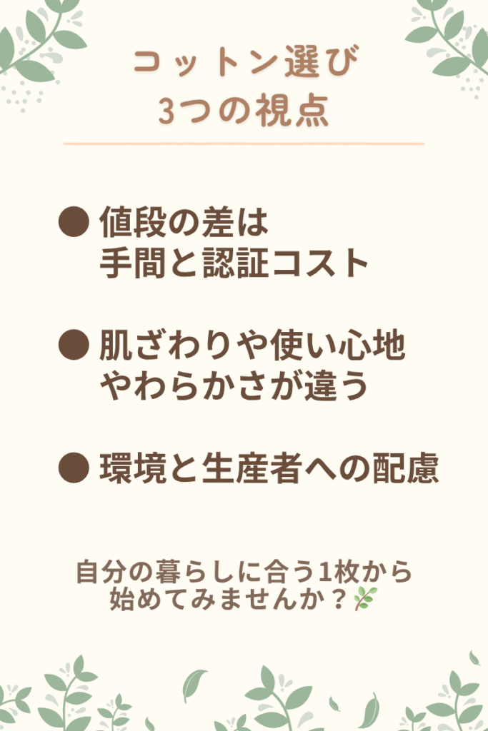 オーガニックコットンは、やや価格が高めです。